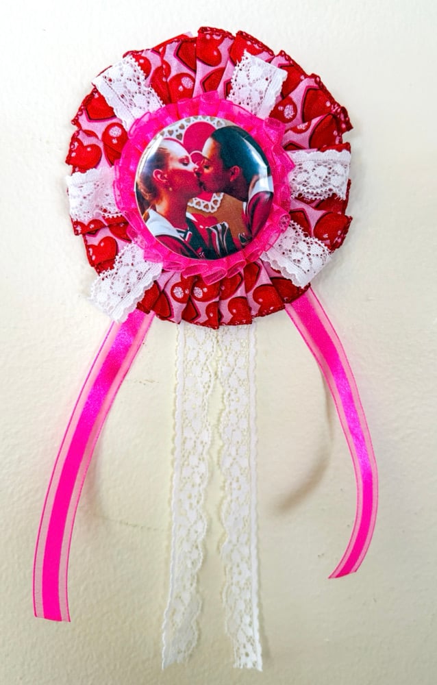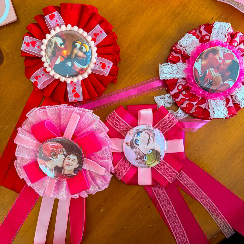 Valentine’s handmade rosette pins with brooch style clasp on the back